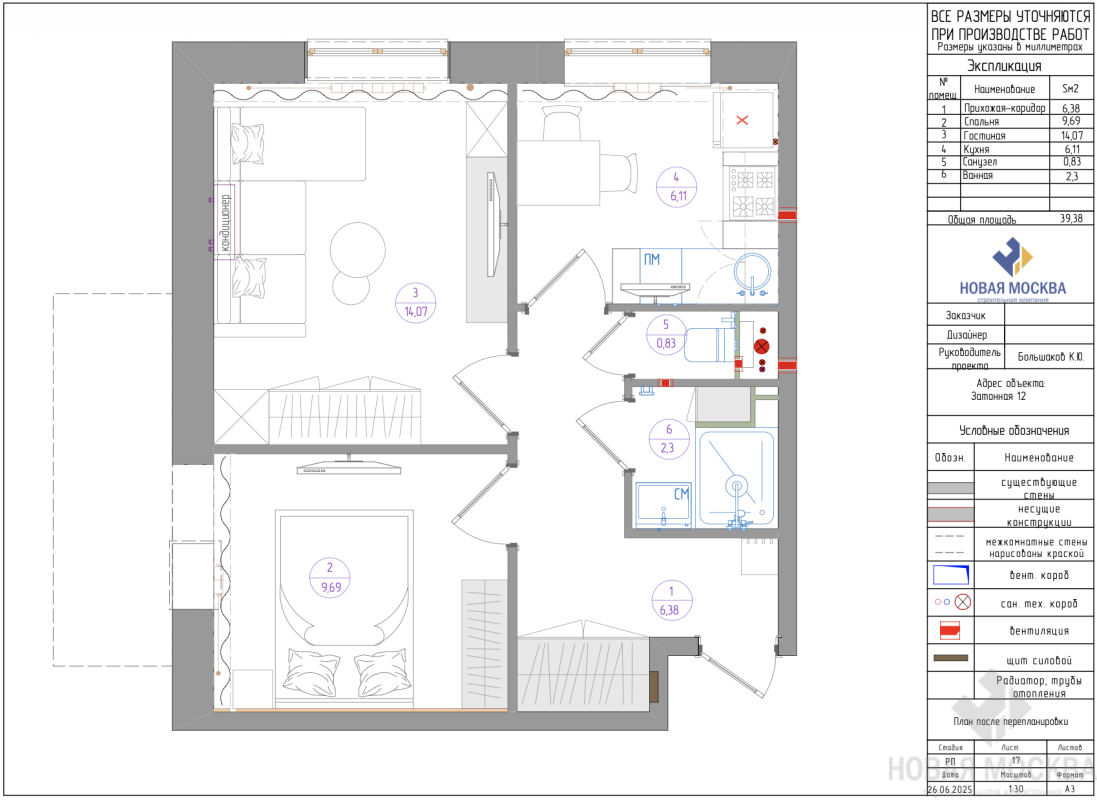 Дизайн двухкомнатной квартиры по адресу: улица Затонная, дом 12, корпус 1