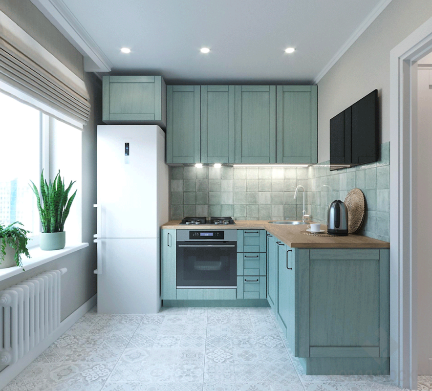В маленьких квартирах при стандартной высоте потолков не стоит перегружать пространство заметными люстрами. Поэтому в качестве основного освещения использованы точечные светильники, а декоративную роль исполняют акцентные бра.