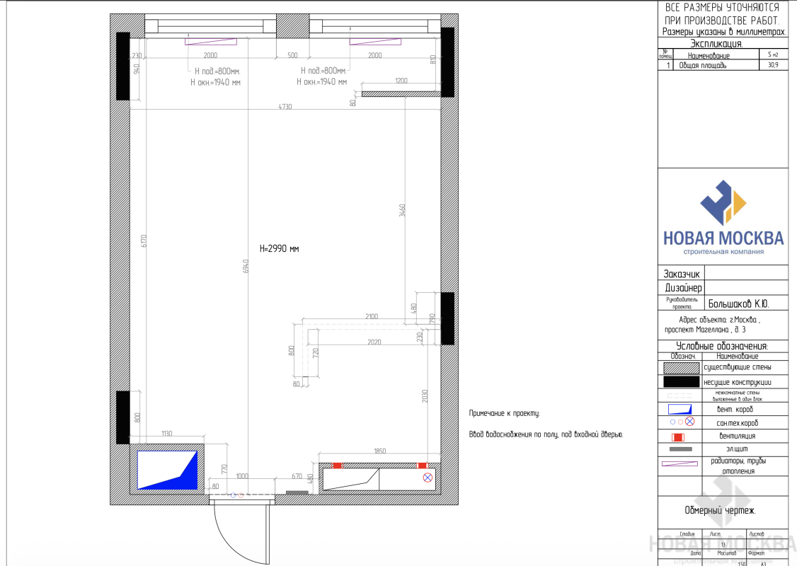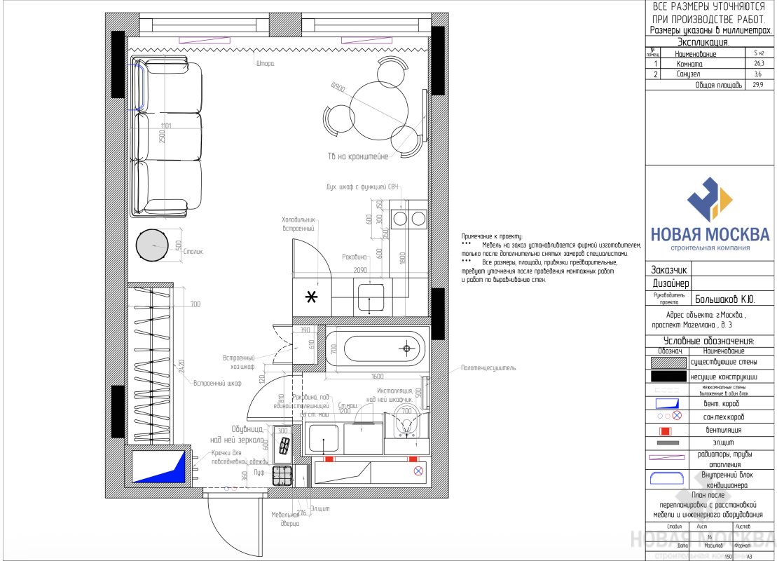 Дизайн квартиры-студии по адресу: проспект Магеллана, дом 3