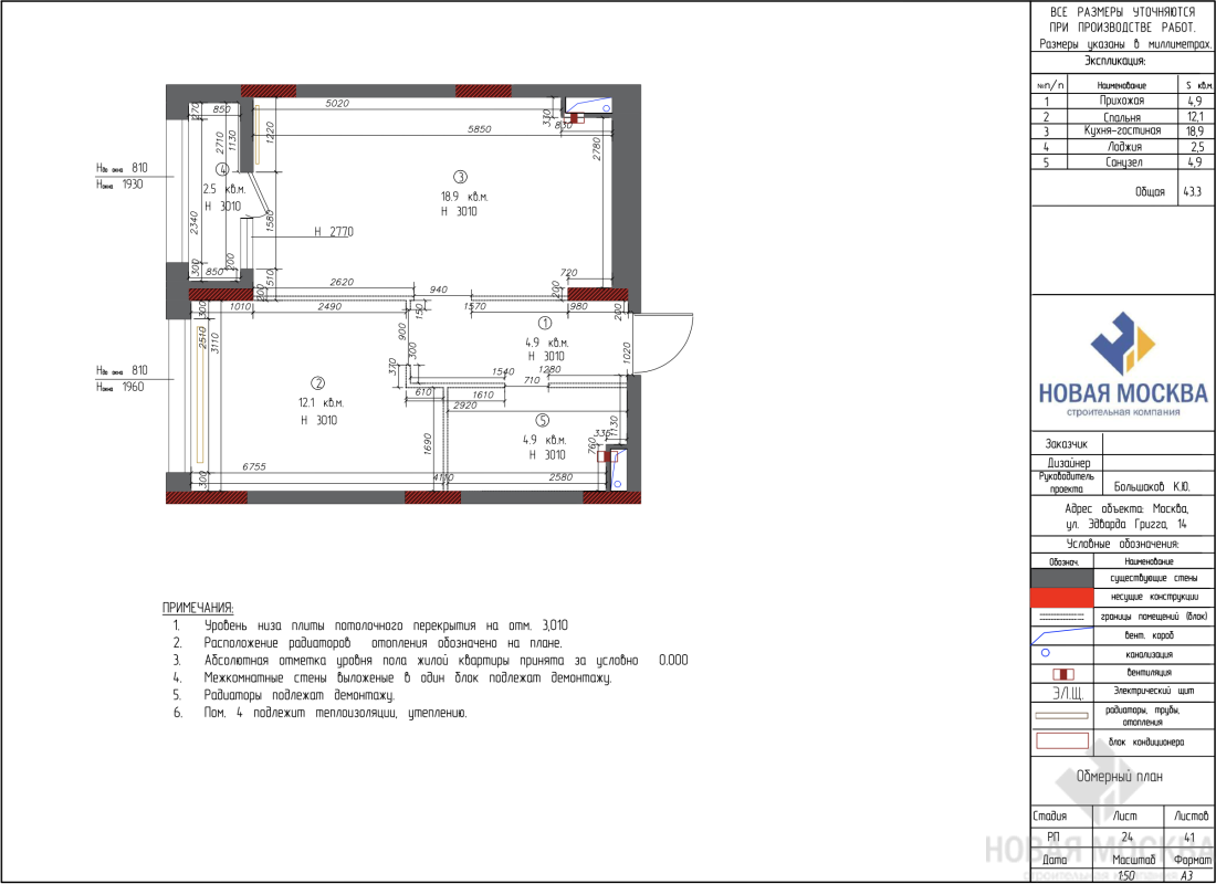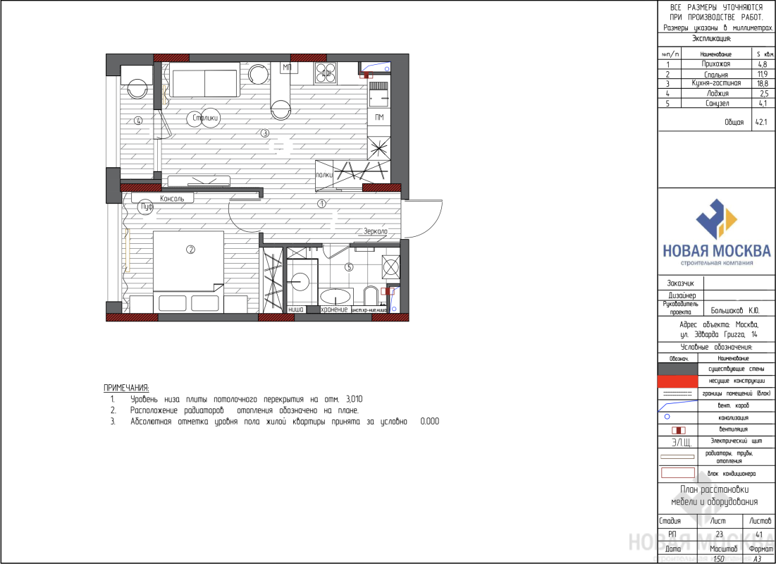 Дизайн однокомнатной квартиры по адресу Москва ул. Эдварда Грига, 14