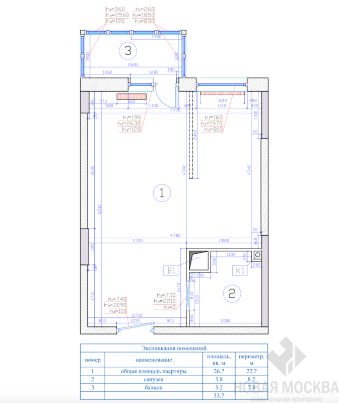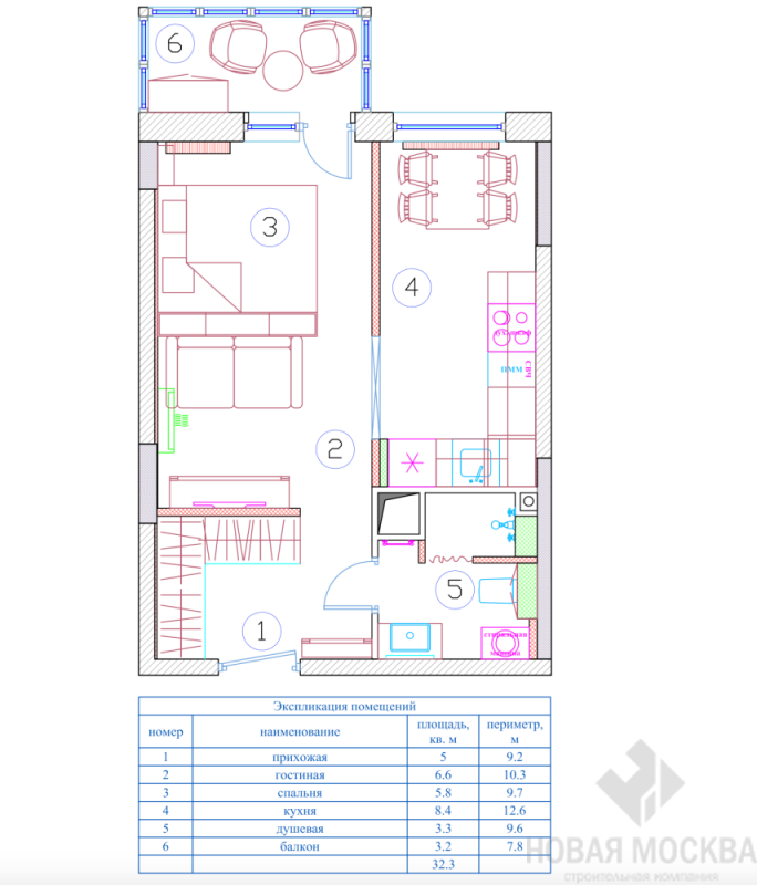 Дизайн-проект 1-комнатной квартиры 32 кв.м ЖК Испанские кварталы