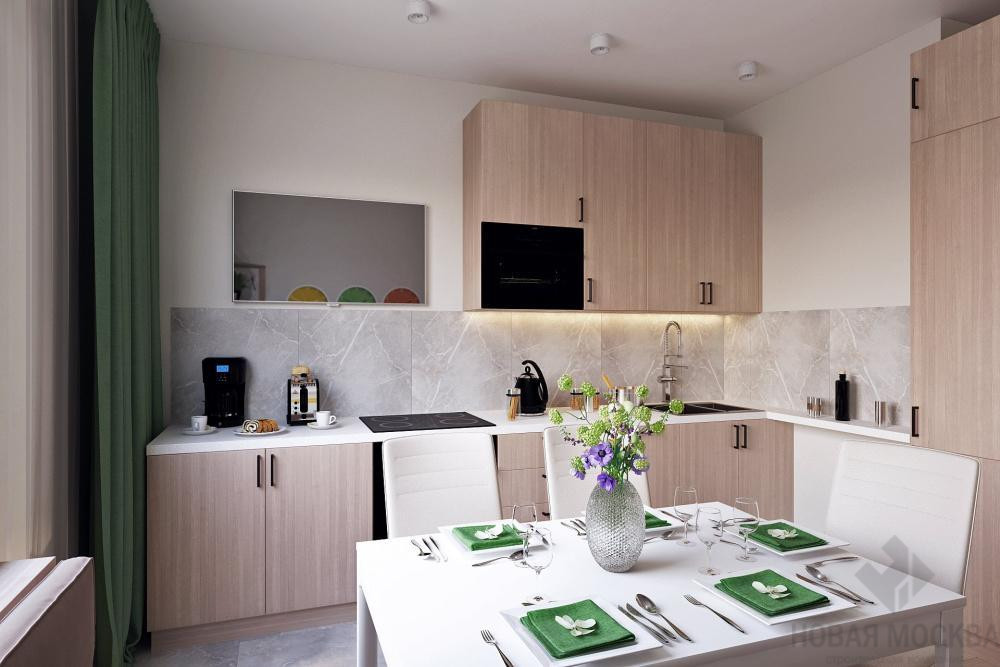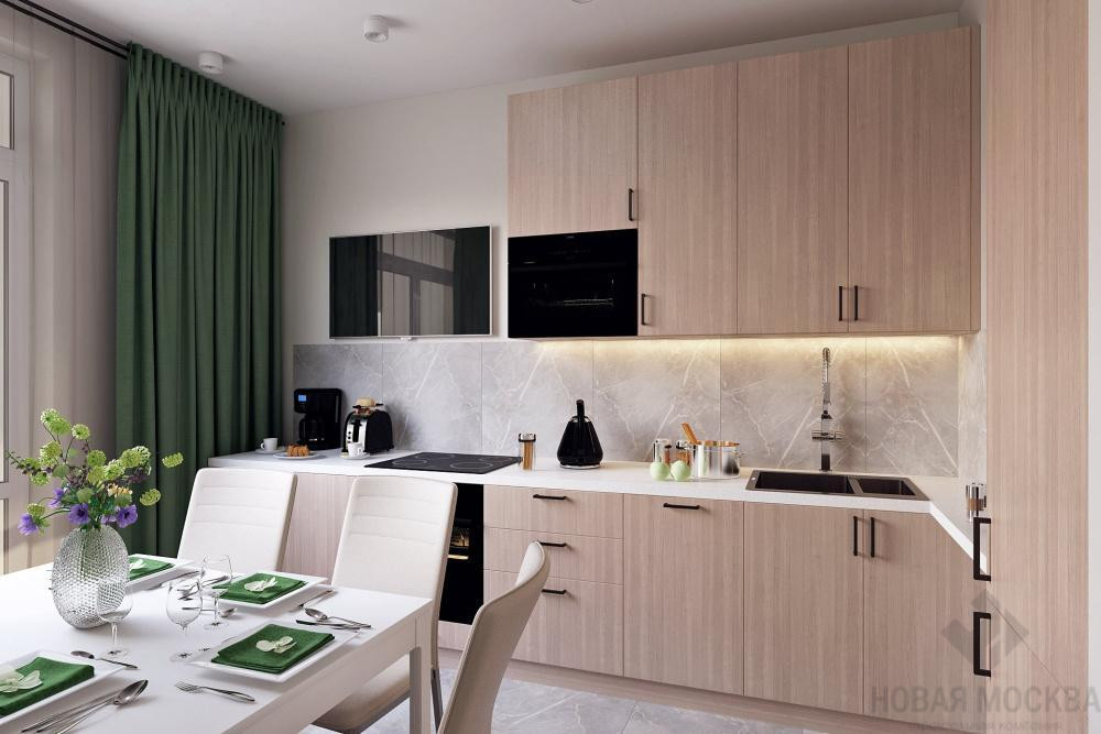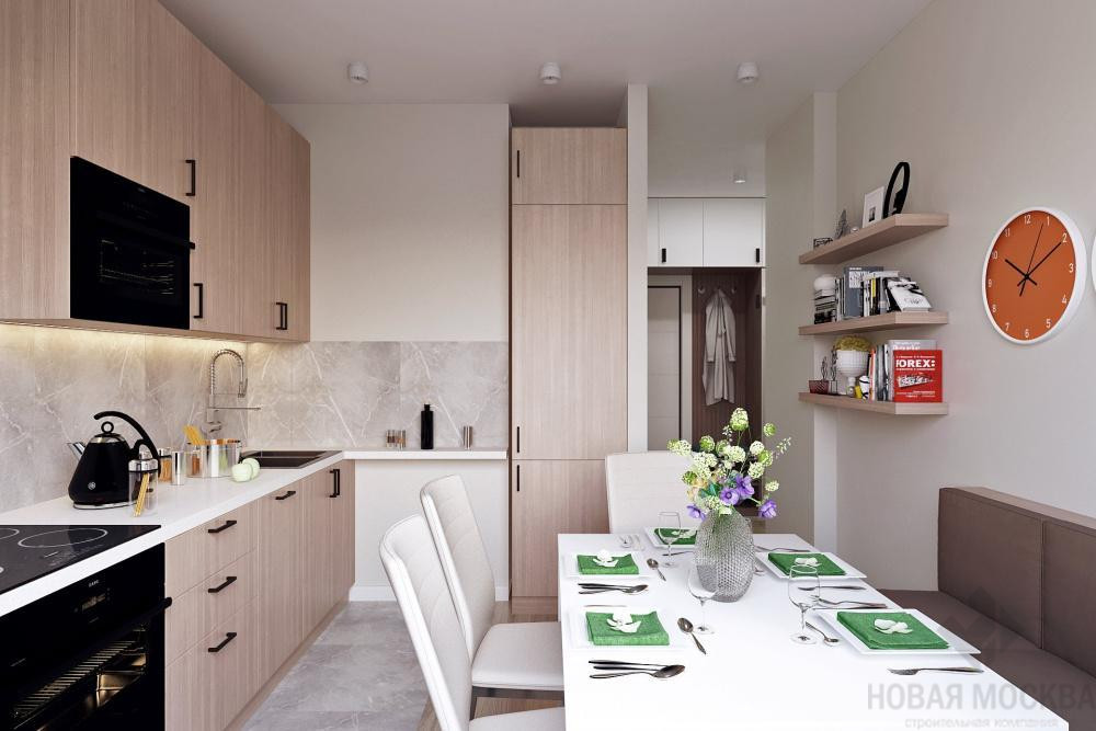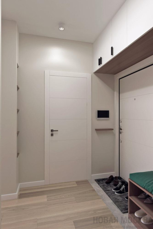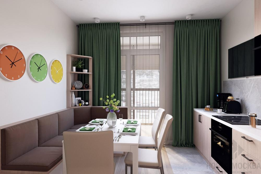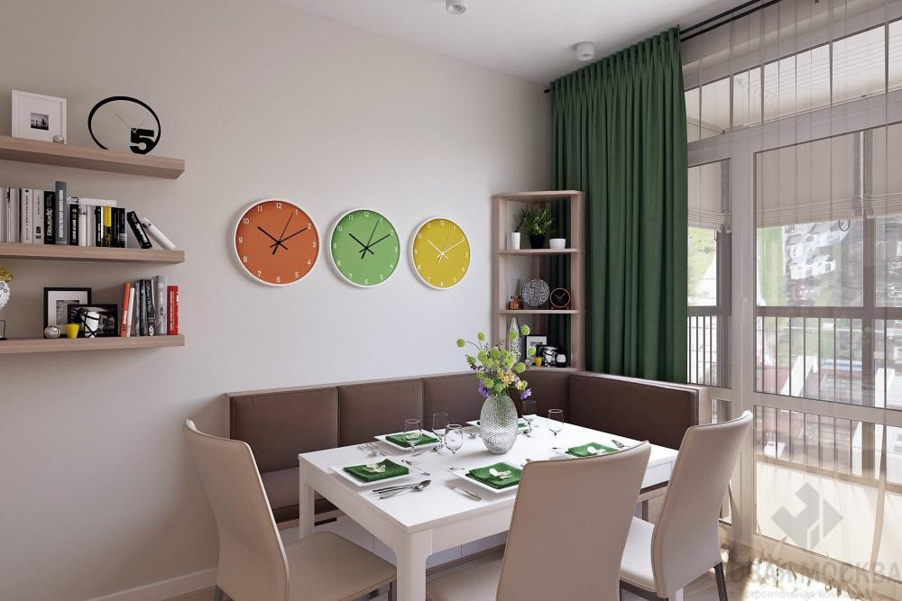 Создать интерьер, отвечающий потребностям молодого неженатого мужчины. В жилой комнате организовать полноценное спальное место, рабочую зону, зону отдыха и просмотра ТВ. В кухне-столовой разместить обеденную группу, барную стойку не использовать. Для оформления интерьера выбрать приглушенные тона.