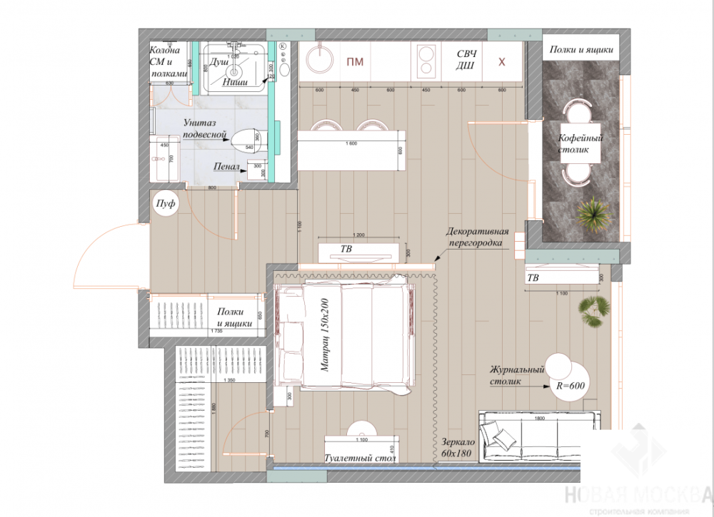 Дизайн-проект 1-комнатной квартиры в ЖК Испанские кварталы