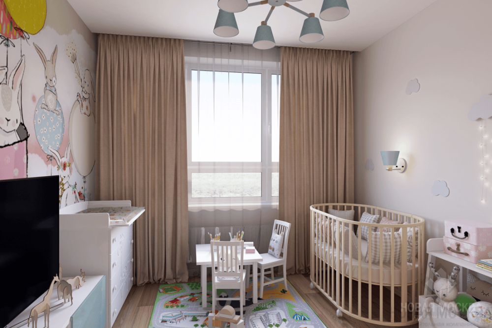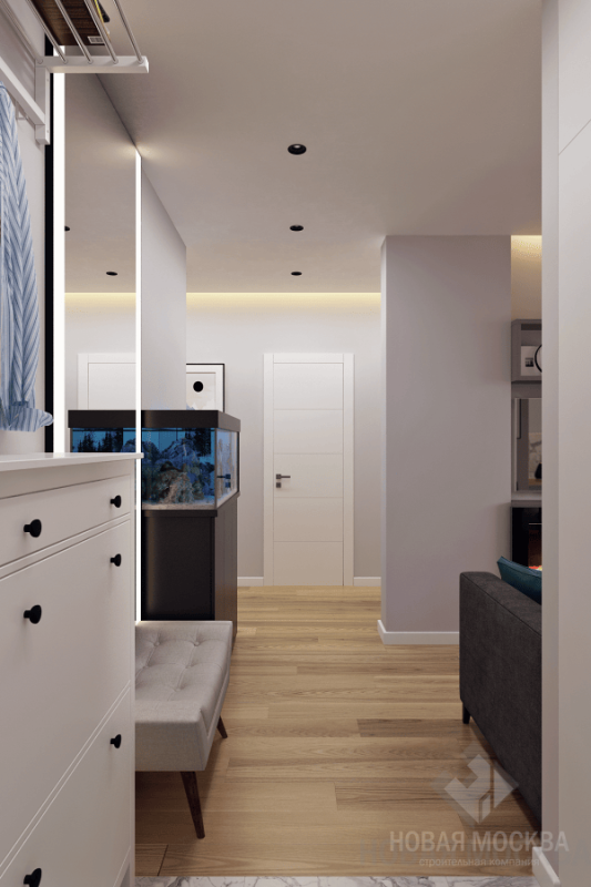 Дизайн-проект 2-комнатной квартиры 62 кв.м по адресу: Москва, поселок Коммунарка, улица Потаповская роща, дом 26, корпус 3