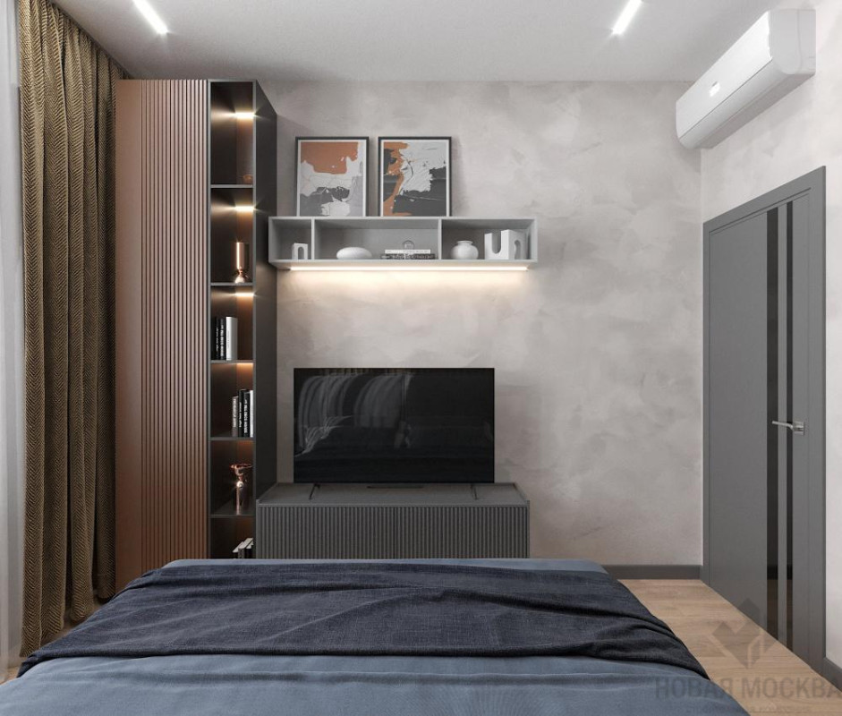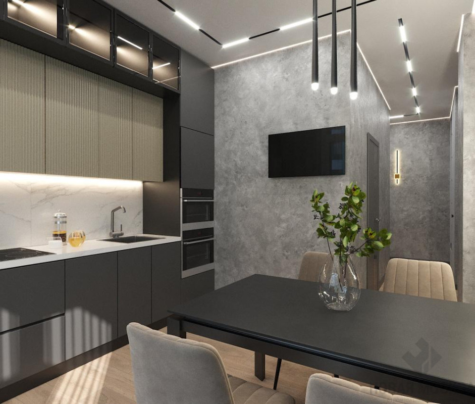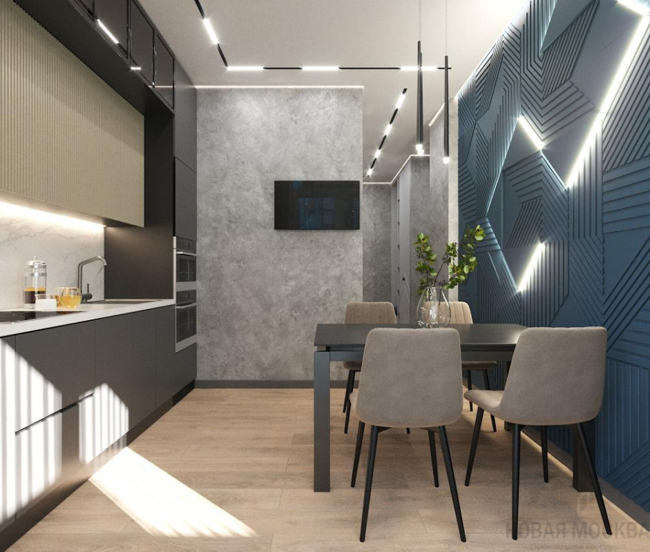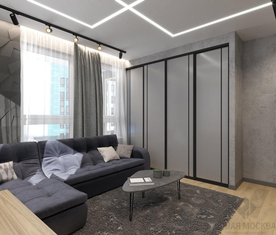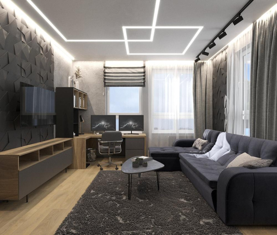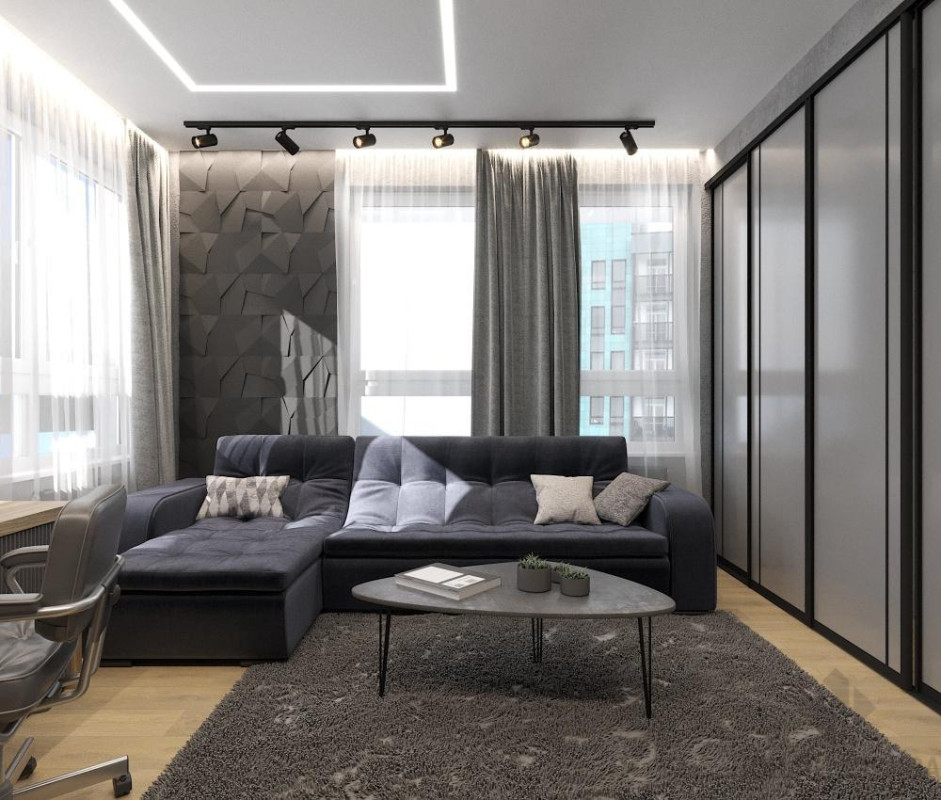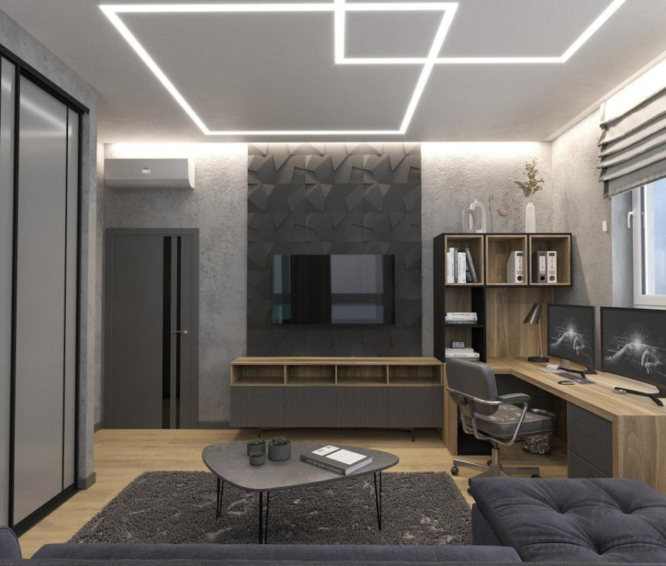 Хозяин квартиры пришел с запросом на интерьер в современном стиле, где будет удобно работать и приятно отдыхать.