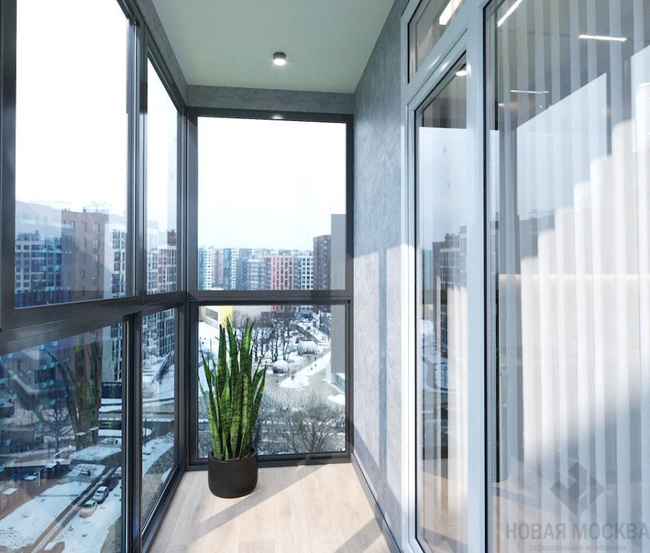 На площади 64 кв. м также расположились автономная кухня, гостиная-кабинет, спальня и лоджия, из которой предложено сделать лаунж-зону с панорамным видом на город. Хранение организовано во встроенных шкафах: в прихожей, спальне и гостиной.