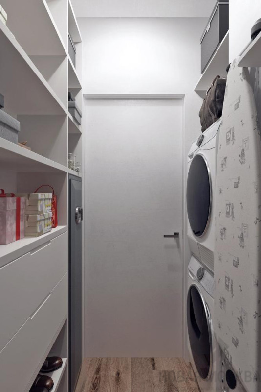 Квартиру со свободной планировкой превратить в удобное пространство для жизни молодой пары. Спроектировать изолированную спальню, организовать кладовую. В отделке стен использовать преимущественно краску светлого тона, на пол, кроме санузла, уложить паркетную доску.