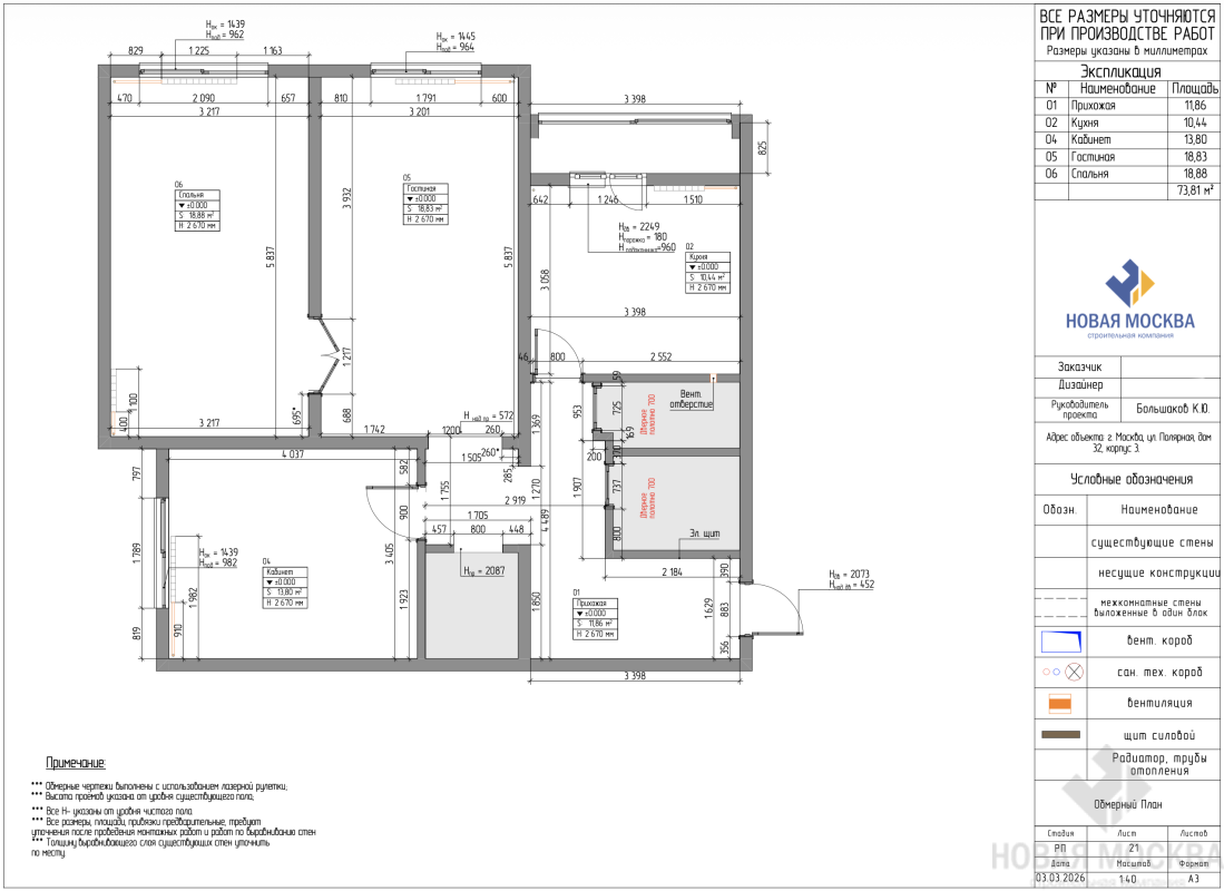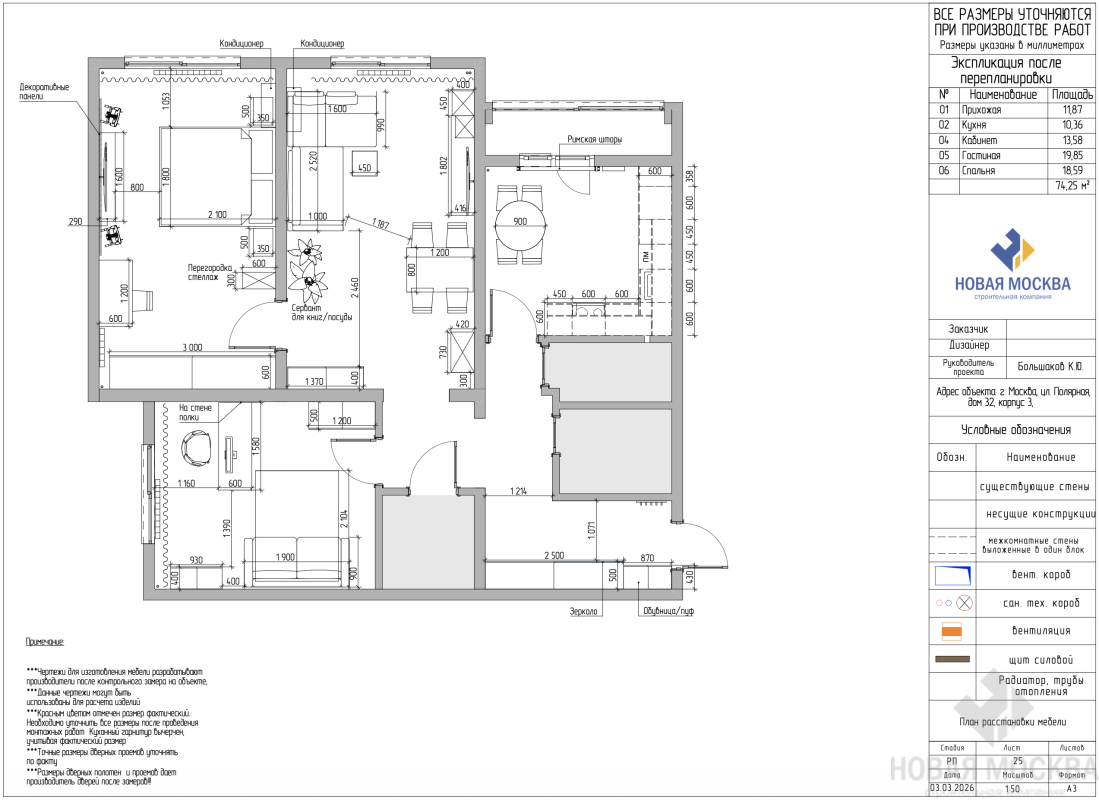 Дизайн трехкомнатной квартиры по адресу: улица Полярная, дом 32, корпус 3