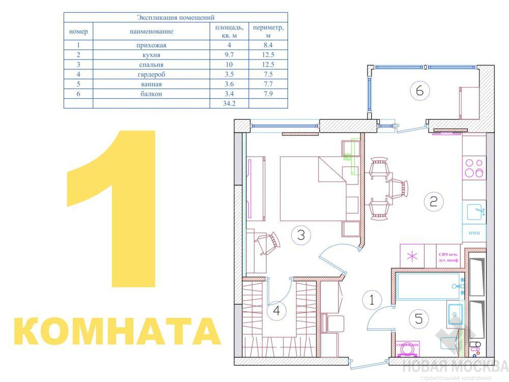 Дизайн-проект 1-комнатной квартиры 34,2 кв.м по адресу: Москва, Нововладыкинский проезд, дом 1, корпус 4
