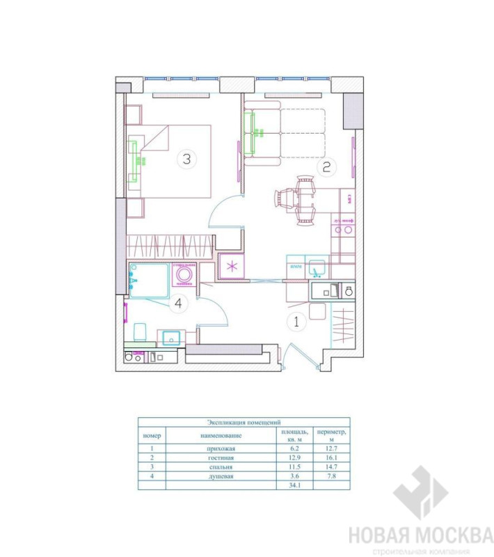 Дизайн-проект 1-комнатной квартиры 37.10 кв.м по адресу: Москва, Головинское шоссе, д. 7