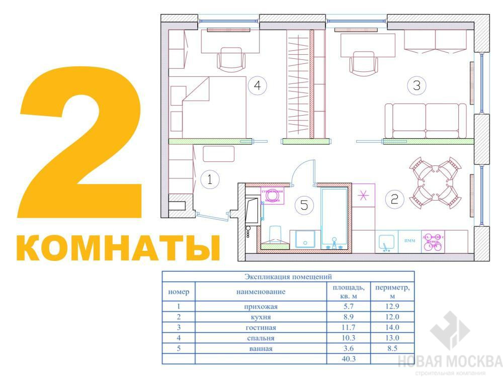 2 комнаты