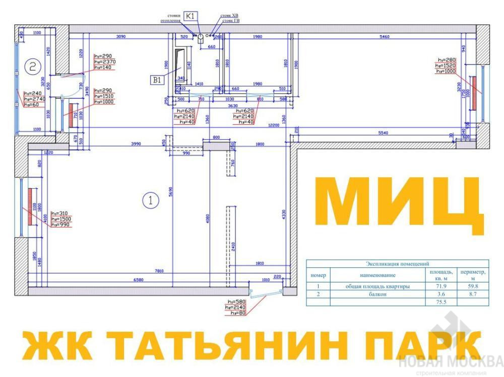 Дизайн-проект 2-комнатной квартиры 72,4 кв.м по адресу: Москва, поселок Московский, улица Татьянин Парк, дом 16, корпус 2