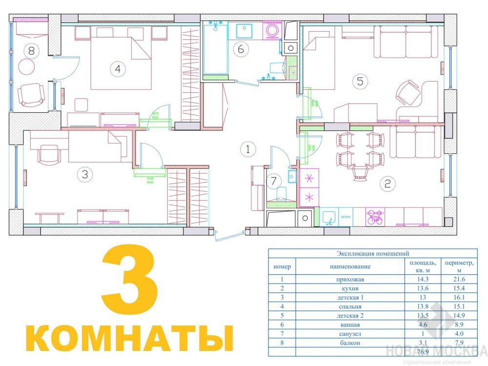 3 комнаты