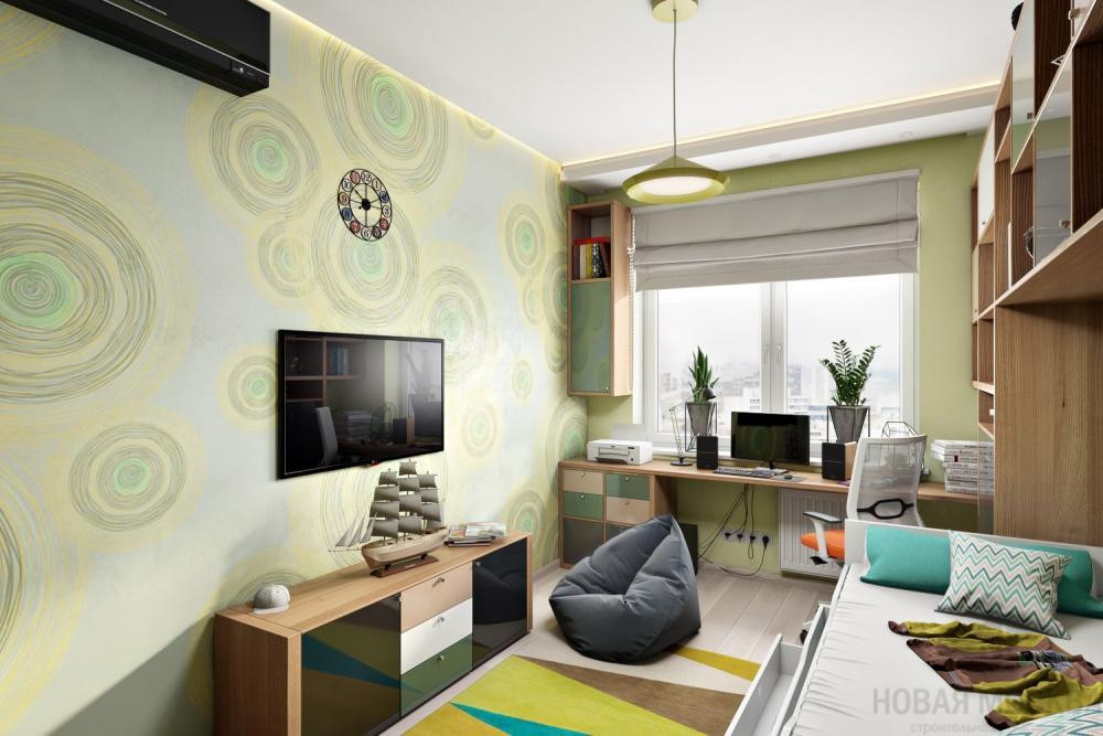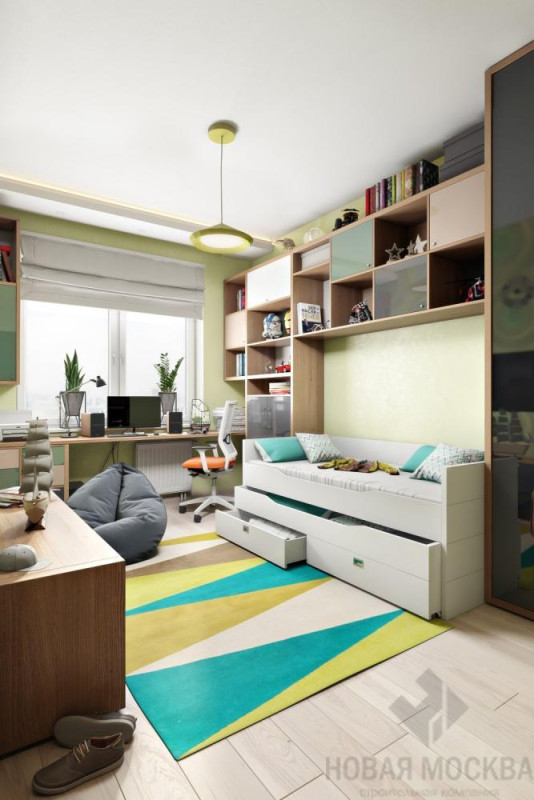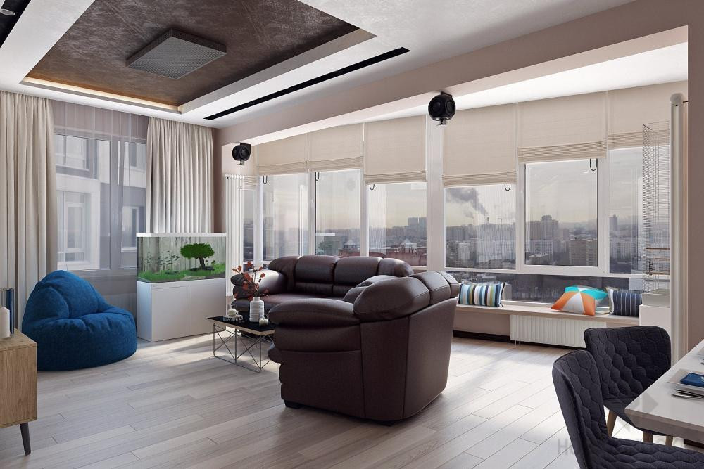 Сделать проект квартиры для большой семьи, в котором предусмотреть отдельные комнаты для каждого члена семьи. Гостиная должна быть светлой с мягким диваном. Нужно также удобно расположить кабинет и гардероб. В процессе проектирования допускается перепланировка квартиры.