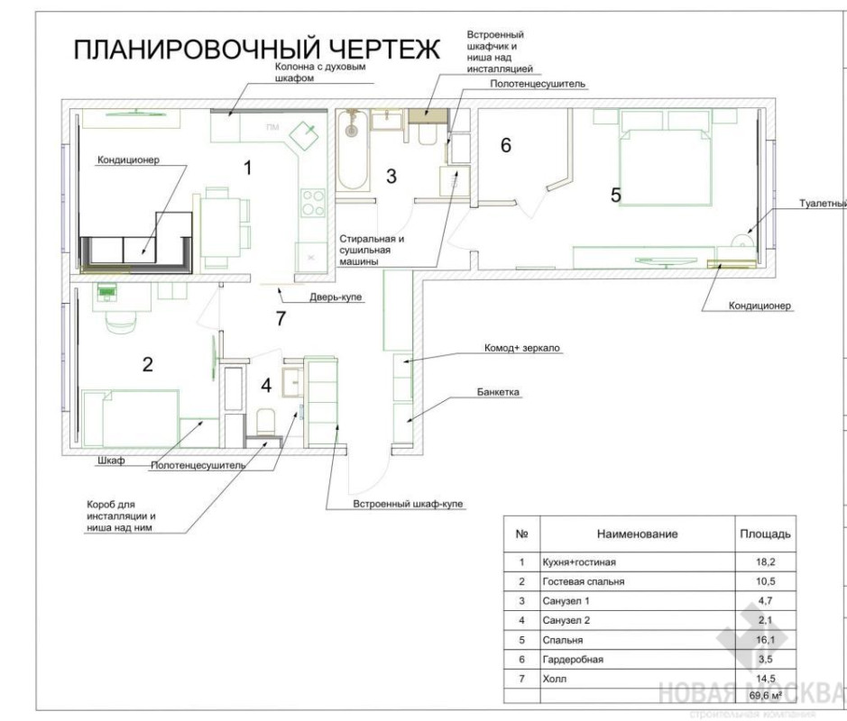 Дизайн-проект трехкомнатной квартиры по адресу: Москва, поселок Коммунарка, улица Александры Монаховой, дом 92, корпус 2