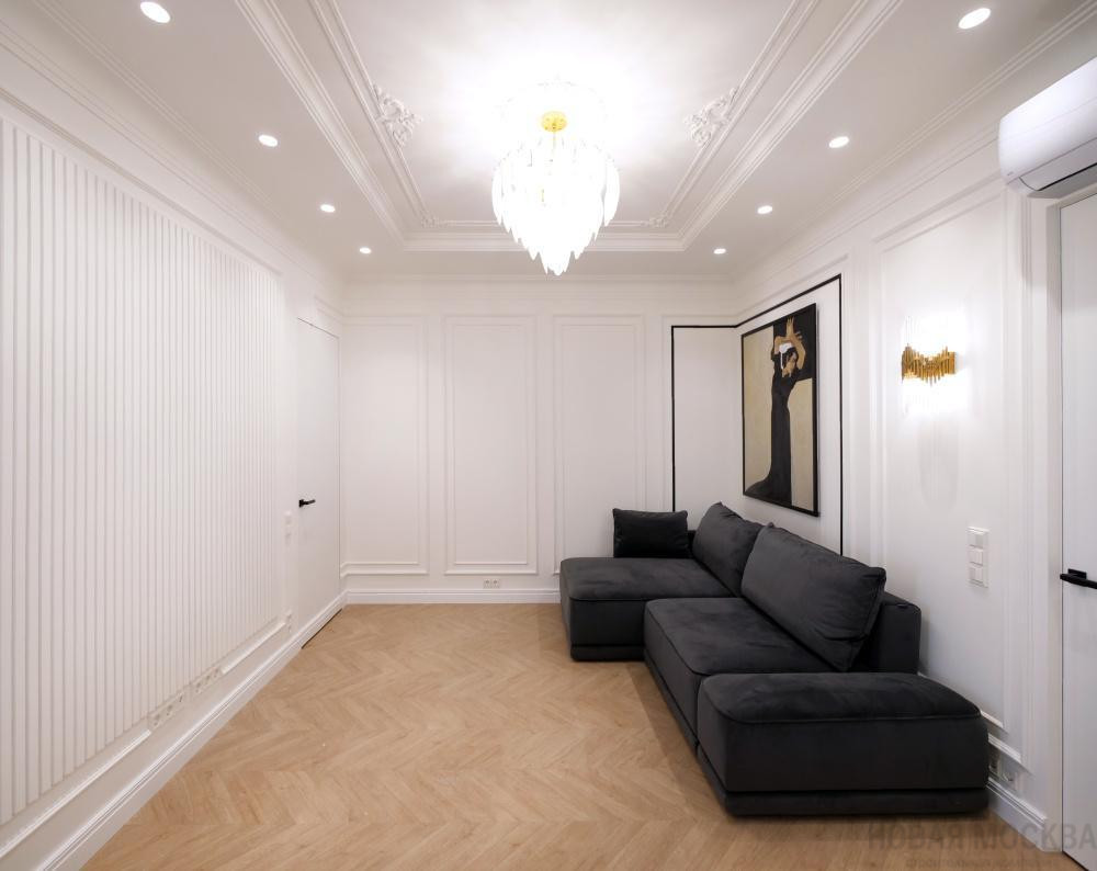 Эта «евродвушка» в ЖК «Крылья» — наглядный пример того, что даже на небольшой площади можно создать эффектный интерьер. На 48 кв. м команда СК «Новая Москва» воплотила мечту заказчицы о пространстве в утонченном неоклассическом стиле.