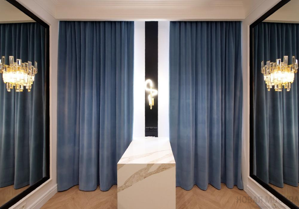 В квартире была сделана небольшая перепланировка: организованы изолированная прихожая, вместительная гардеробная и отдельная спальня.