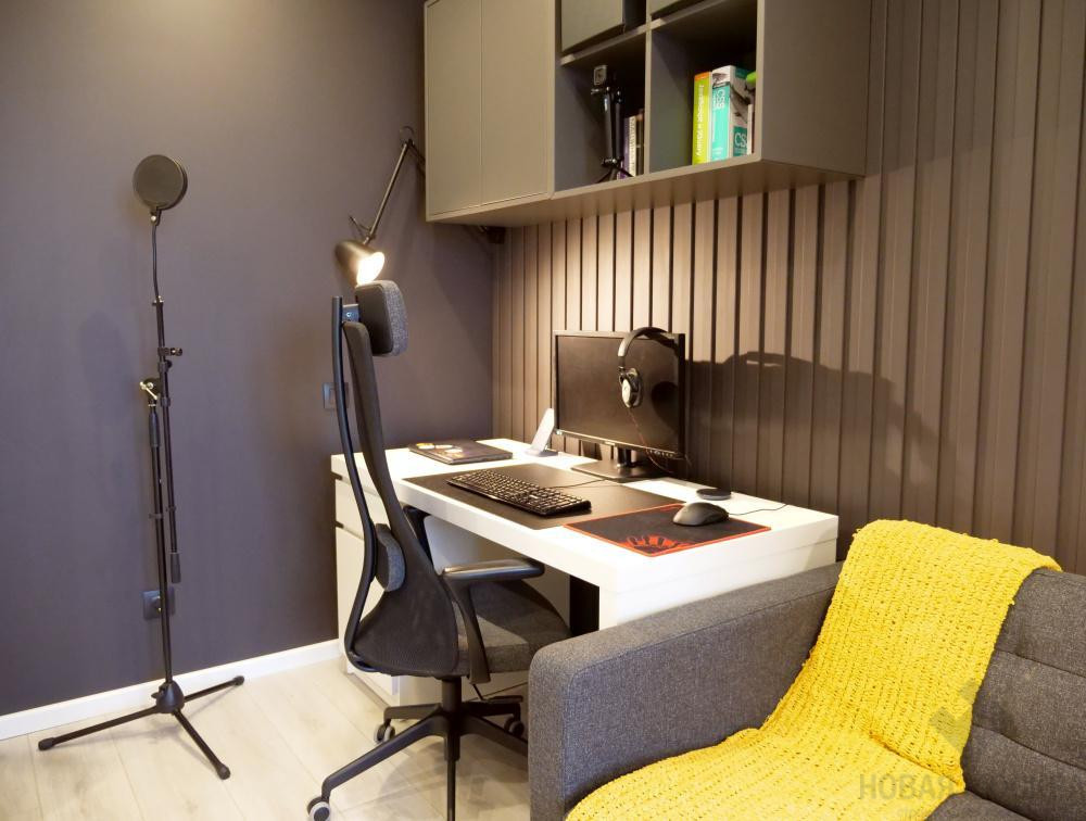 Организовать в единственной жилой комнате три функциональные зоны: рабочую, «мягкую» и сна. Лоджию утеплить, на ней и в ванной уложить систему «теплый пол».