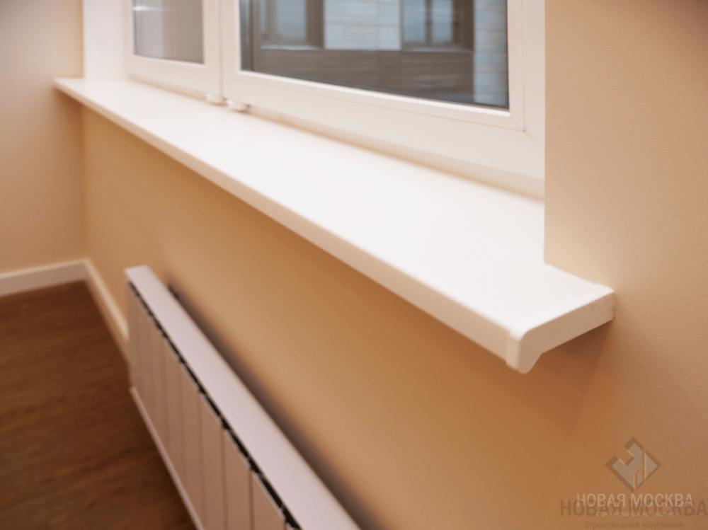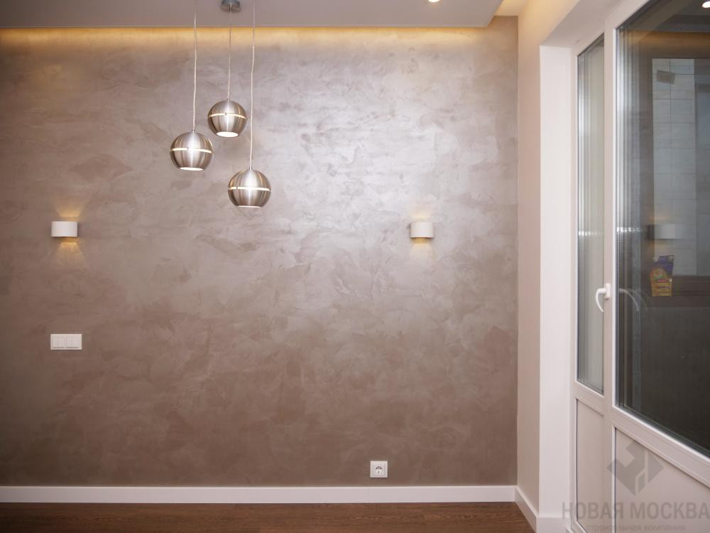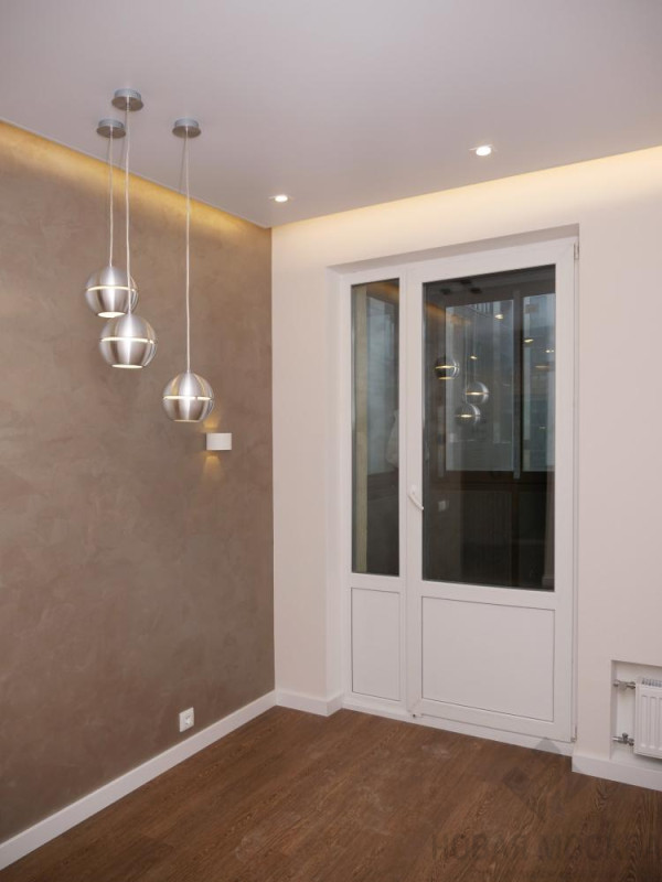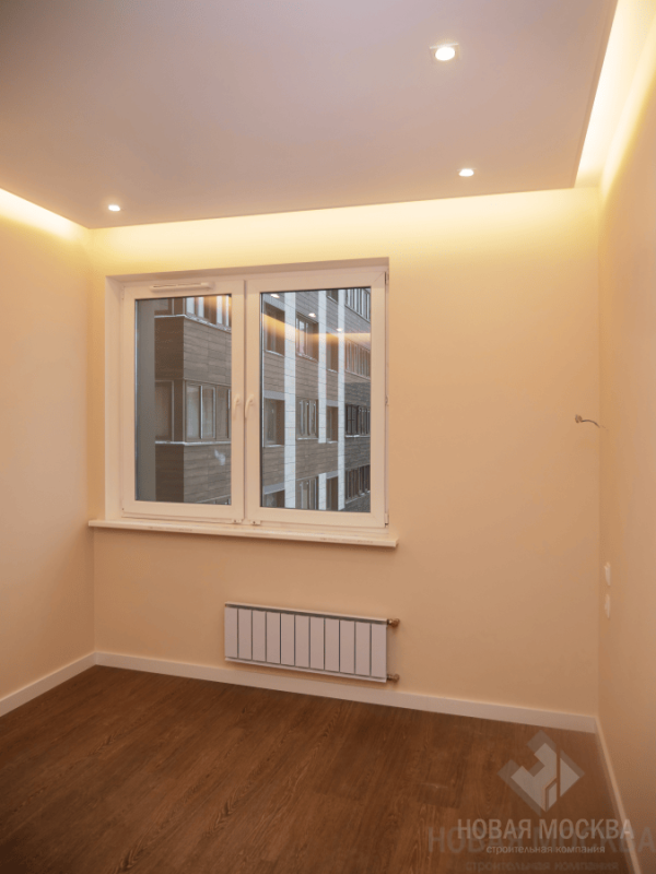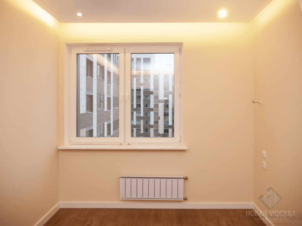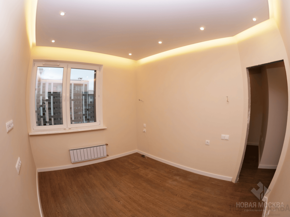 Выполнить ремонт квартиры со свободной планировкой в новостройке согласно утвержденному дизайн-проекту. Организовать изолированную спальню с рабочим местом, в кухне-столовой выделить три функциональные зоны. Заменить все радиаторы отопления. Объединить санузел. В отделке применить керамическую плитку, керамогранит, краску, декоративную штукатурку, деревянные рейки, кварцвиниловую плитку. В квартире реализовать многоуровневое освещение.