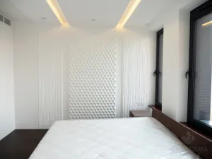 Также мы сделали ремонт просторной евротрешки в ЖК PEROV SKY с использованием передовых материалов отделки: гипсовых 3D-панелей, декоративной краски, крупноформатного керамогранита под мрамор.